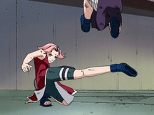 Sakura und Ino stehen sich im Wettkampf gegenüber, doch egal wie sehr sie sich auch bemühen, sie können sich gegenseitig nicht besiegen, sie scheinen gleich stark zu sein. Bis Ino auf die Idee kommt, das Jutsu der Übertragung des Geistes anzuwenden. Damit scheint sie die Oberhand zu bekommen, doch Sakura gelingt es, sich zu befreien.